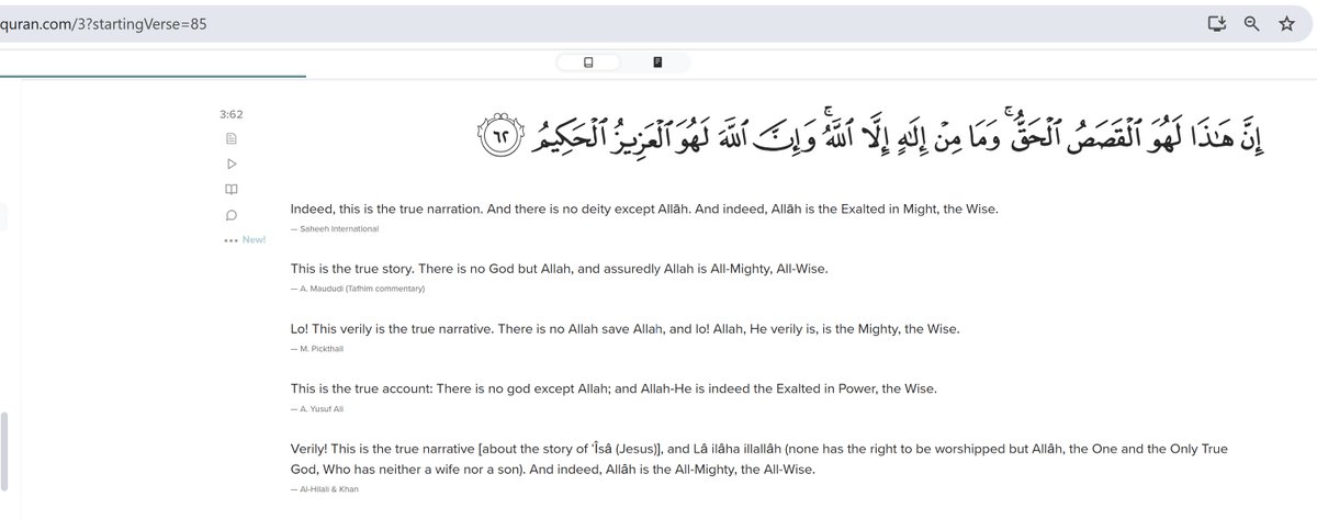 5/11 The above texts (Q 3:19 and 3:85) appear in surah 3, which criticizes the worship of Christ, claims that such worship contradicts Christ’s teaching, and invites the People of the Book to commit to strict monotheistic worship as a common ground with the Believers.