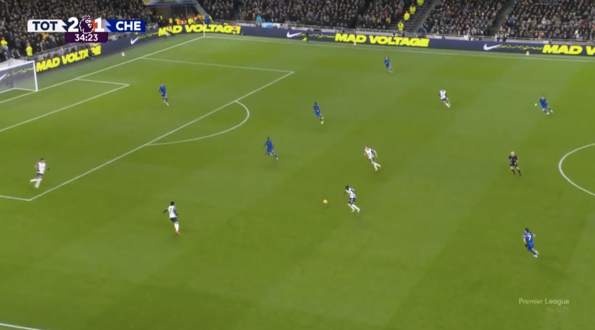 Because Spurs were so aggressive with their high press, it meant that if Chelsea could break the press or play over it, they were often in very nice attacking scenarios with 1v1 matchups over the pitch.