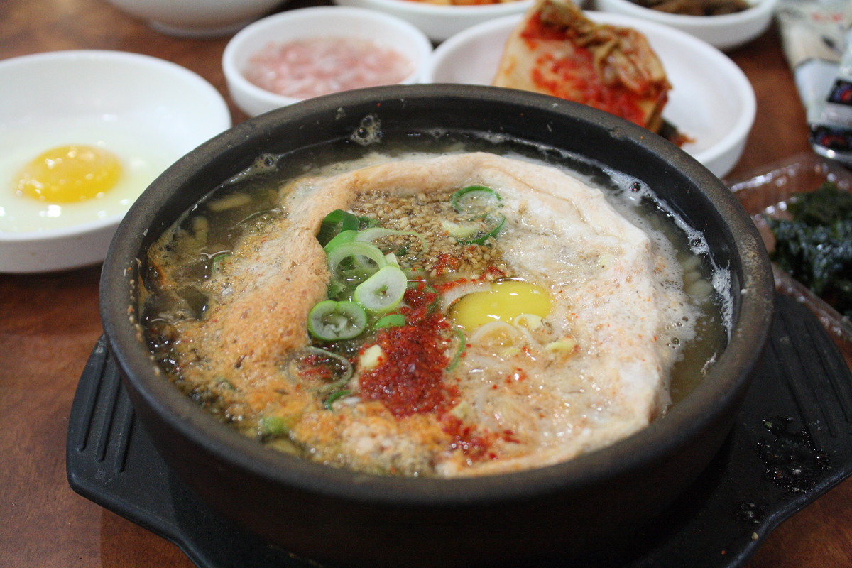 もうひとつ「끓이는 식」の代表格が「三百家(삼백집)」。ほぼこの店のスタイルなので、「삼백집식」とも呼びます。ぐつぐつ煮立てるのと、落とし卵を加えることが特徴とされますが、左上にあるように目玉焼きもついてきたりします。「三百家」も現在は全国にフランチャイズ店が展開しています。