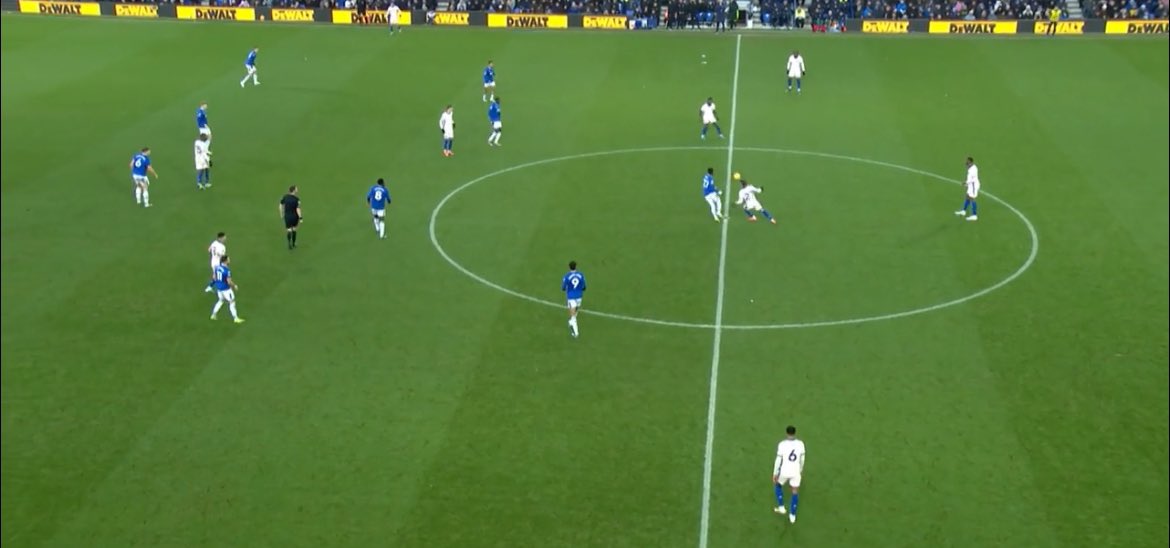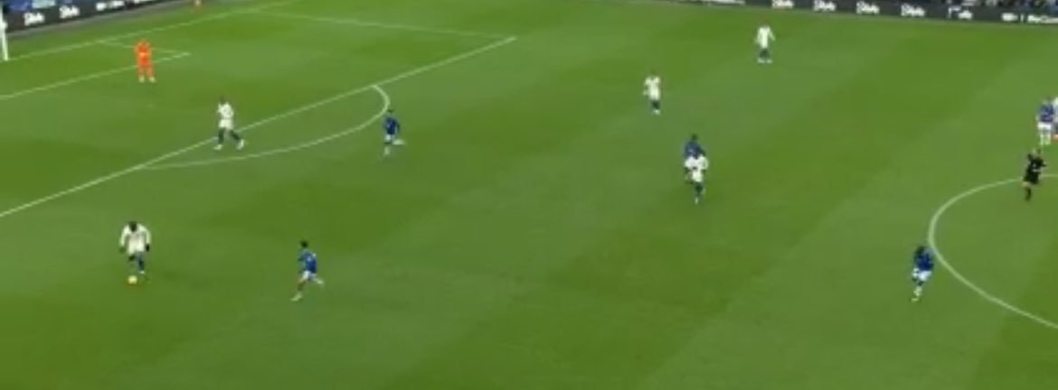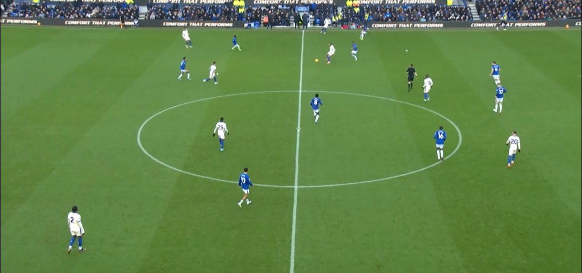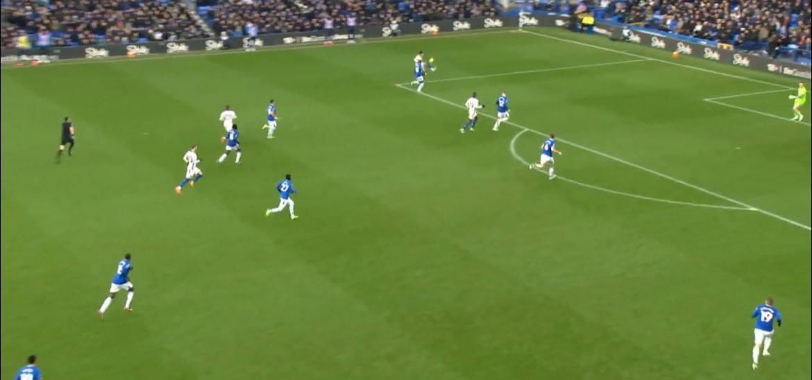 The first was if Everton did win the ball, Calvert-Lewin would be extremely isolated So unless the Everton players could carry the ball over a long distance then they’d be no support on the counter which would often lead to a quick turnover
