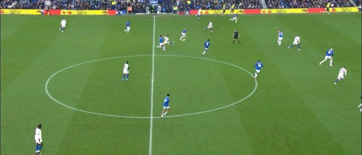 In the 2nd half Dyche also tweaked the role of Calvert-Lewin so he was more on our left side rather than central to try & apply pressure to Enzo when he dropped deep or to a potential Colwill carry But it did leave a lot of space for Tosin to pick out passes