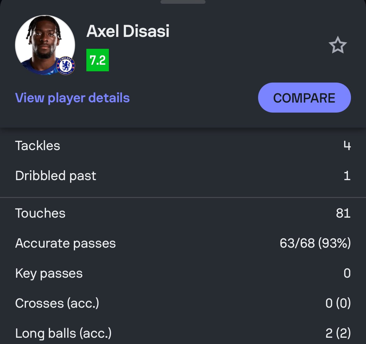Tosin & Enzo in particular had great success with these switches of play, Colwill had a slight off day with it, Disasi didn’t attempt as much & even the successful ones were a bit too slow Disasi not offering much carrying threat or progressive passing is an issue…