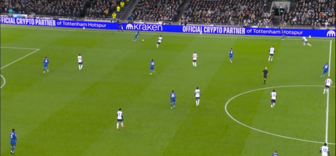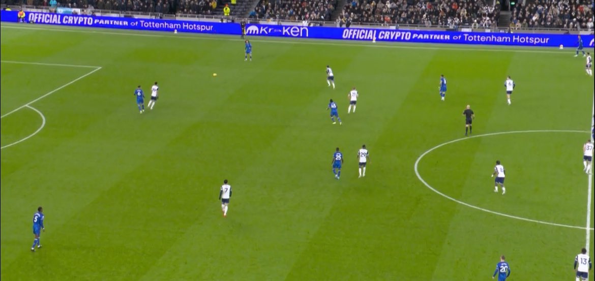 Then Enzo would drop extremely deep which gave their right centre back a problem, originally he’d only have to step out a few yards to press Enzo (in the left half space) But now he’d have to push extremely high up which he wasn’t comfortable with, letting Enzo play forwards