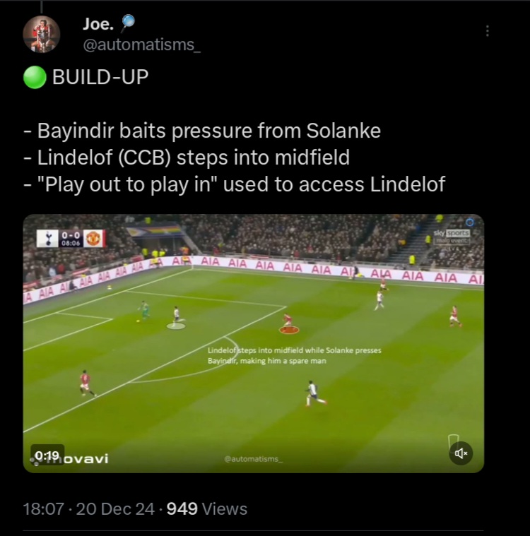 โ CHALLENGES IN BUILD-UP - Man-to-man press from Newcastle - United unable to find free CCB (Maguire) in midfield as they did in early games under Amorim - Reoccurring issue from Bournemouth and Wolves games https://x.com/automatisms_/sta...