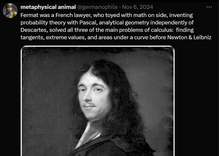@SagasofBharat Eudoxus (408–355 BC) used the method of exhaustion. Euclid invented the Limit. Newton got his calculus from Fermat's way of drawing tangents. Leibniz invented his notation from scratch, which was soon adopted by Europe, England would fall behind Europe as they stuck to Newton🧐
