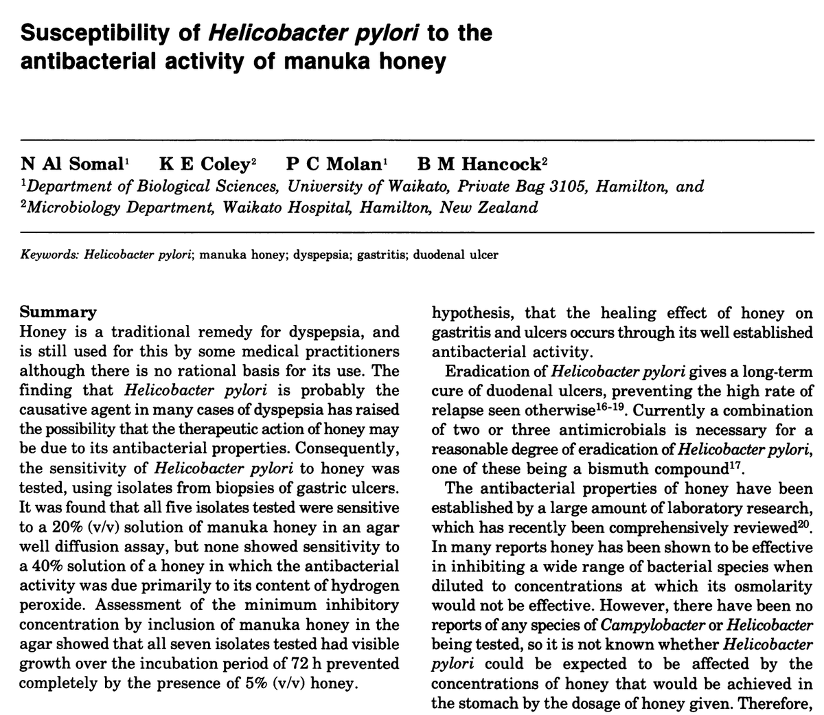 Manuka honey reverses stomach ulcers. Most doctors treat ulcers with acid reducing agents - but this only acts as a band-aid in the short term, since we need the acid for digestion. Ulcers are really an issue of inflammation in the stomach - something honey combats.