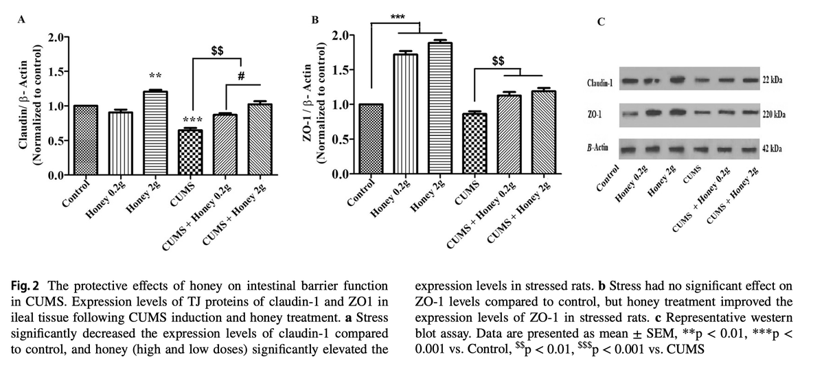 Raw honey also prevents leaky gut. Chronic stress can deplete tight junction proteins that keep the gut sealed and prevent inflammation. Raw honey's: ☆ Antibacterial ☆ Anti-inflammatory ☆ Antioxidant properties help to replenish these proteins.