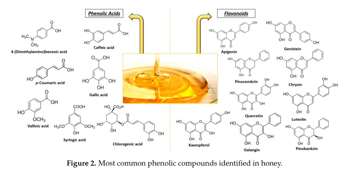 The real magic of raw honey lies in its phenolic bioactives. These are compounds that can scavenge free radicals - which downstream drive inflammation. These can also oppose estrogen and have antimicrobial benefits. 100s of these in raw honey and they're still being