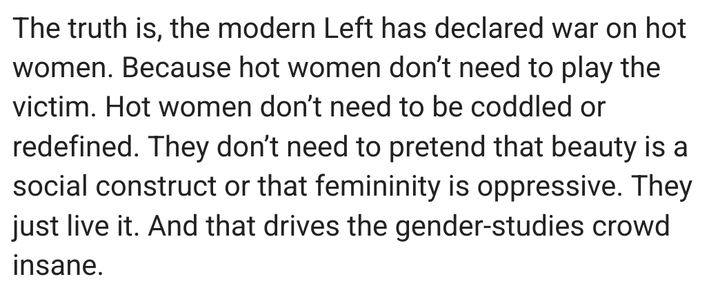 Fox News: The modern left has declared war on hot women https://x.com/FoxNews/status/1...