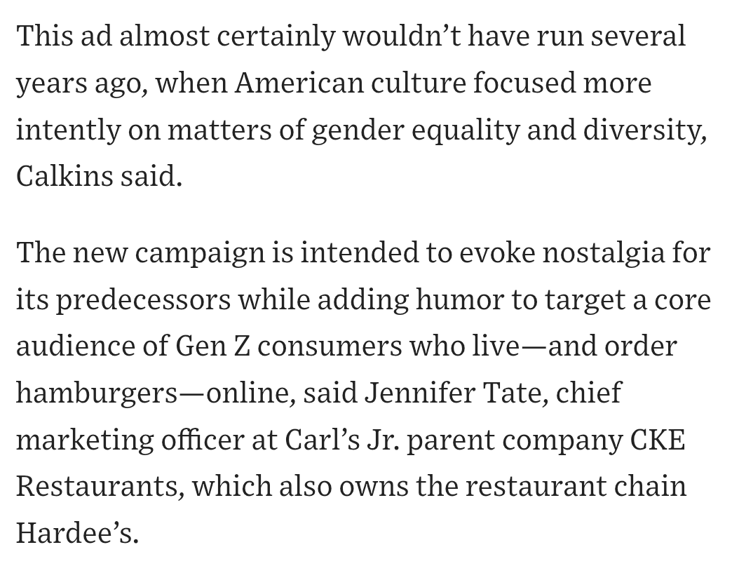 The new twist on the brand’s once-signature style mirrors a cultural about-face that coincides with President Trump’s return to office “Clearly with the new administration, what is acceptable conduct is changing, and I think you’re seeing Carl’s Jr. jump right on that trend”