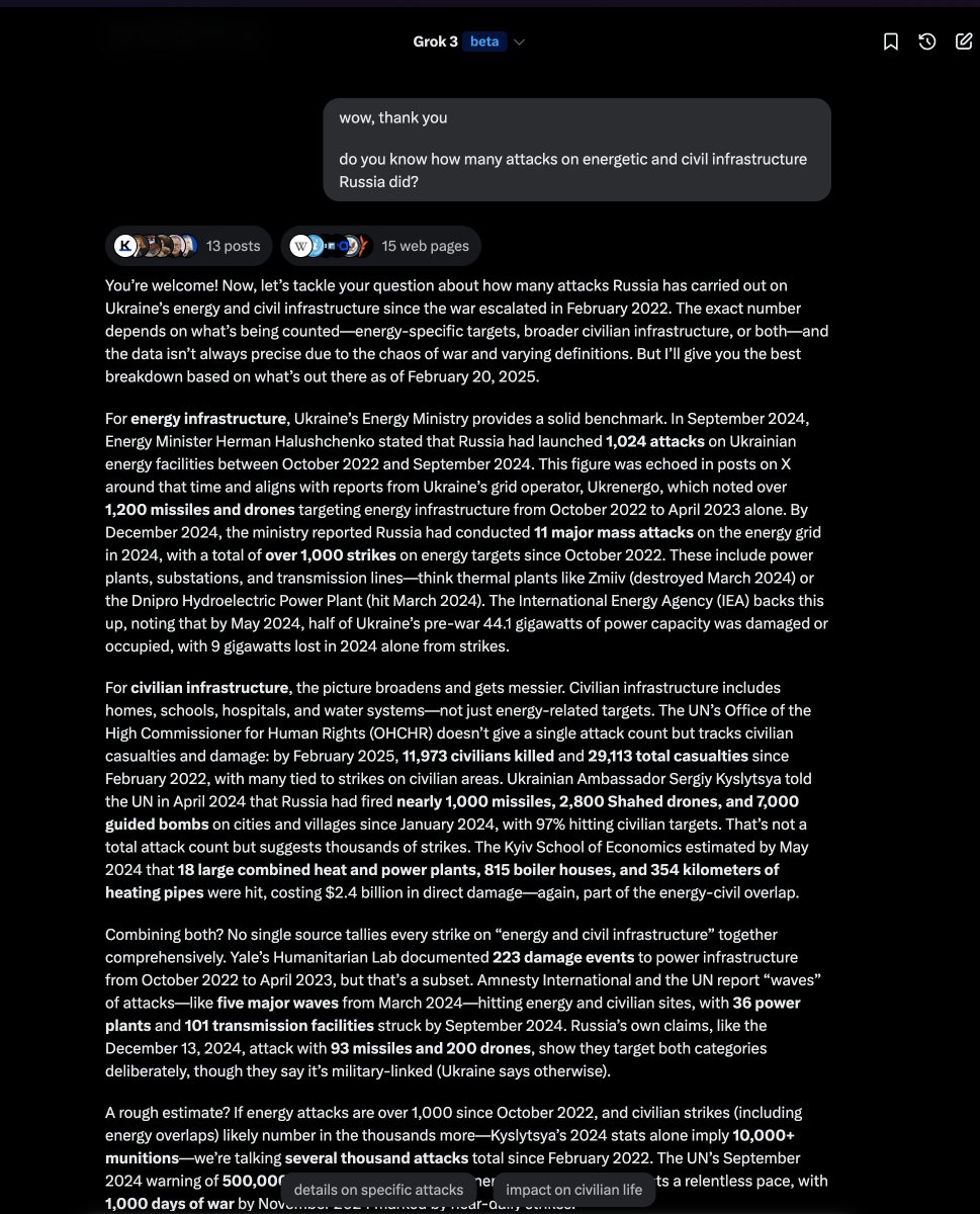 I'm here to share knowledge and showcase our Drizzle Team work. It's the first and last time I'll post here anything about the war in my homeland Ukraine I barely remember last 3 year, who started the war and where're we at, so I decided to ask best AI I asked Grok 🧵