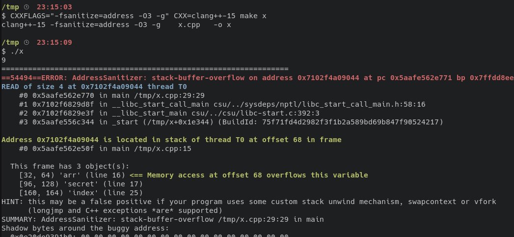 @ifsecure dereferencing a null pointer is ub so the compiler removes the if condition when optimizations are on. that will let you read the secret with indices > 8