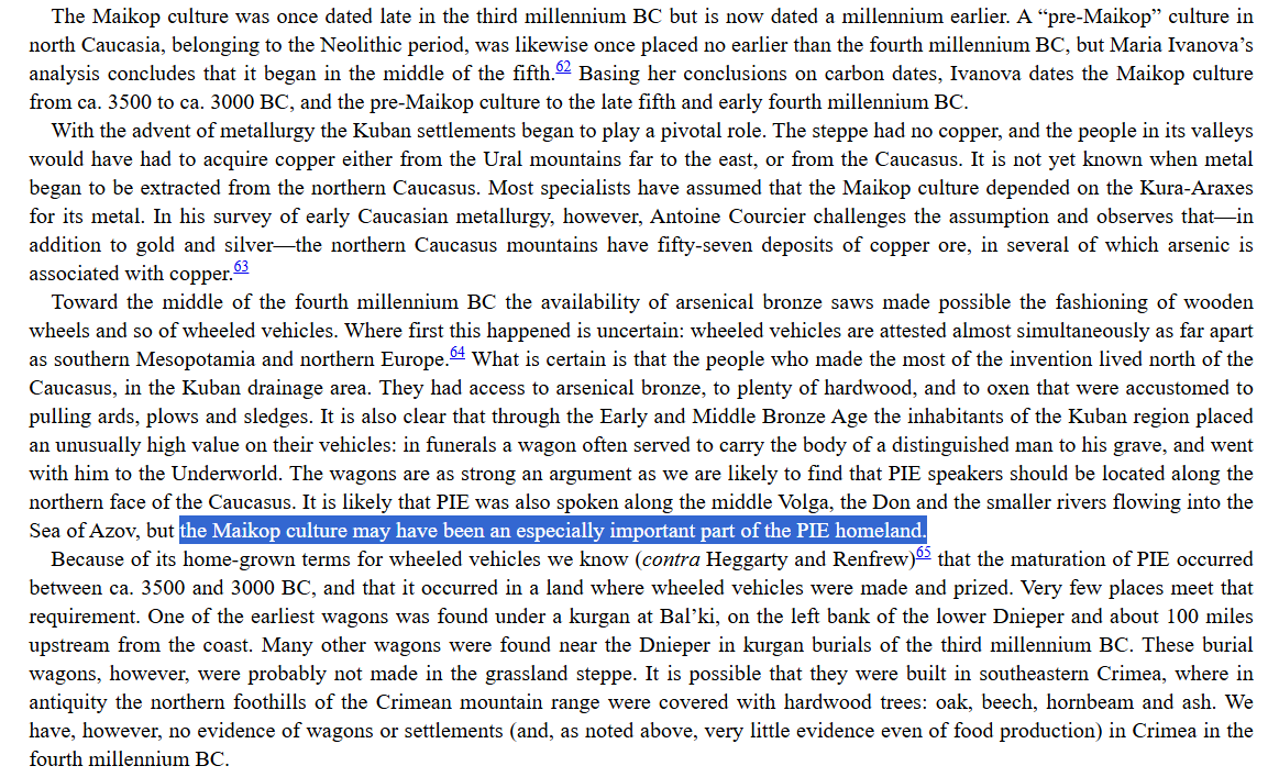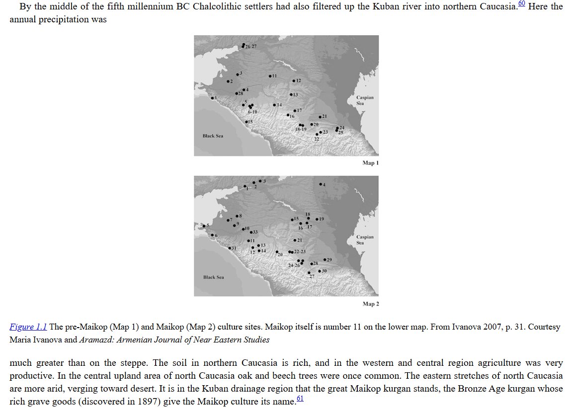 Now we get into Maykop. There is no doubt that Maykop had a massive influence on the Proto-Indo-Europeans, culturally-speaking, and Drews’ triangulation of the geography here maps nicely to what the recent 2025 papers (“The Genetic Origin of the Indo-Europeans” and “A Genomic