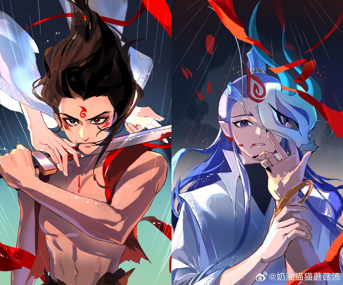Artist Link: https://m.weibo.cn/detail/5137... That's why when I saw this art I was greatly moved because this right here is exactly what happened. Despite the differences Nezha 2019 was actually very close to going the same way as Nezha in 1979. The happier ending 40 years later was precisely because the two of them saved each other from their fate.