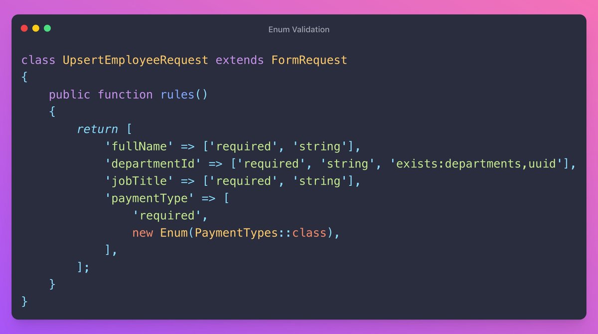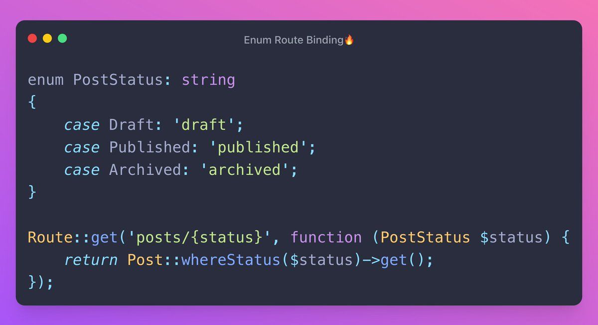 ⚡You can do some pretty cool stuff with enums in PHP and Laravel. In this thread, I’ve collected some of the useful stuff, such as: - Backed enums - Using enums as factories - Validation - Enum route binding - Model attribute casts 🧵Keep Reading