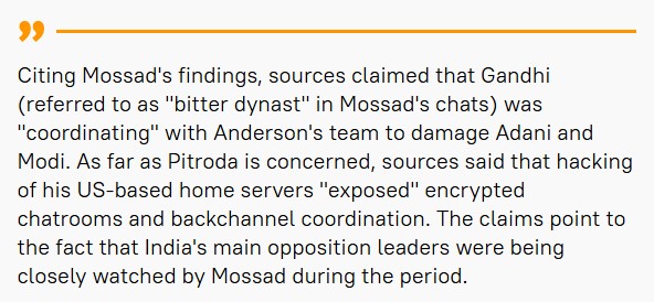 Mossad finds an active role of an Indian opposition leader (Code name : Bitter Dynast) and his party's overseas office in this Hindenburg attack 31st May 2023 Mossad agents finds that "Bitter Dynast" secretly meets to Hindenburg officials at Palo Alto, California