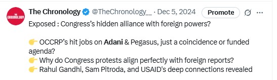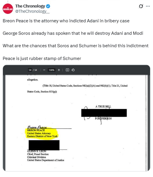 Dec 2024 Biden administration played a central role in this attack on Adani. Biden administration allies in the Department of Justice and Securities and Exchange Commission (SEC), mounts a legal attack against Adani but case doesn't withstand legal scrutiny https://x.com/TheChronology__/...