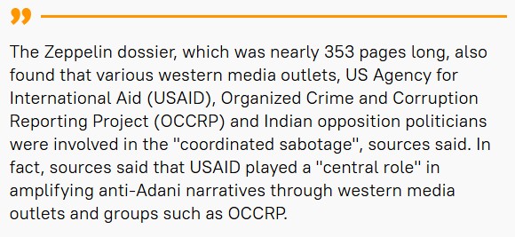 USAID played a "central role" in amplifying anti-Adani narratives through western media outlets and groups such as OCCRP. November 2024 Mossad exposes this story to Reuters, Bloomberg and Guardian. But most of them bury the story, except French outlet Mediapart which expose it