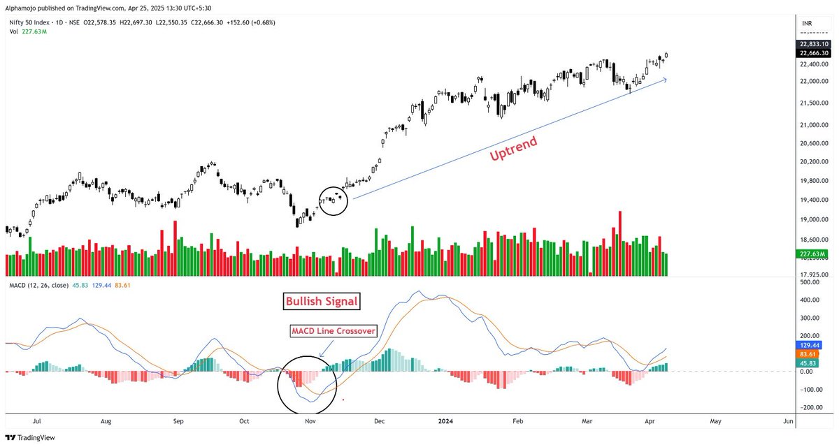 1.1 MACD When the crossing of the MACD line with the Signal line occurs from the bottom up, the trend will be bullish. When the crossing of the MACD line with the Signal line occurs from top to bottom, the trend will be bearish.