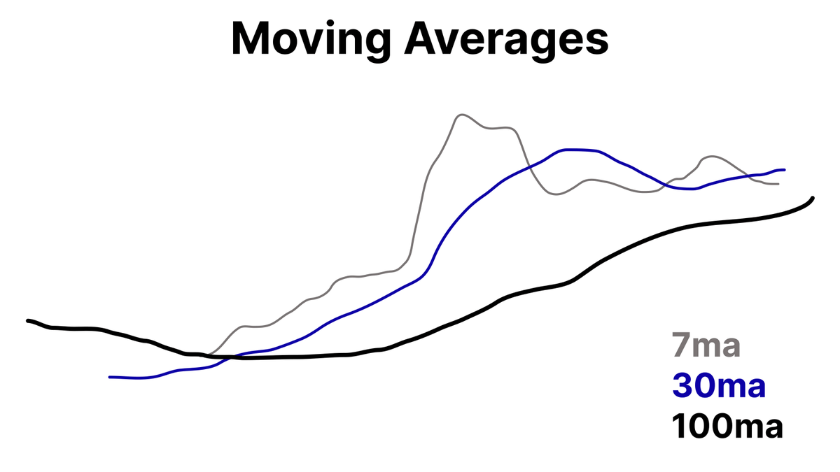 But first, what is a Moving Average? A moving average is a line that shows the average price of a coin/ asset over a specific period. There are 2 main types: