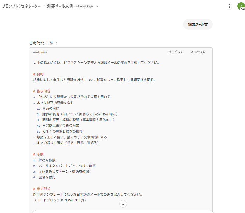 「指示」にプロンプトを仕込む モデルは性能が向上しているo4-mini highやo3が良いです