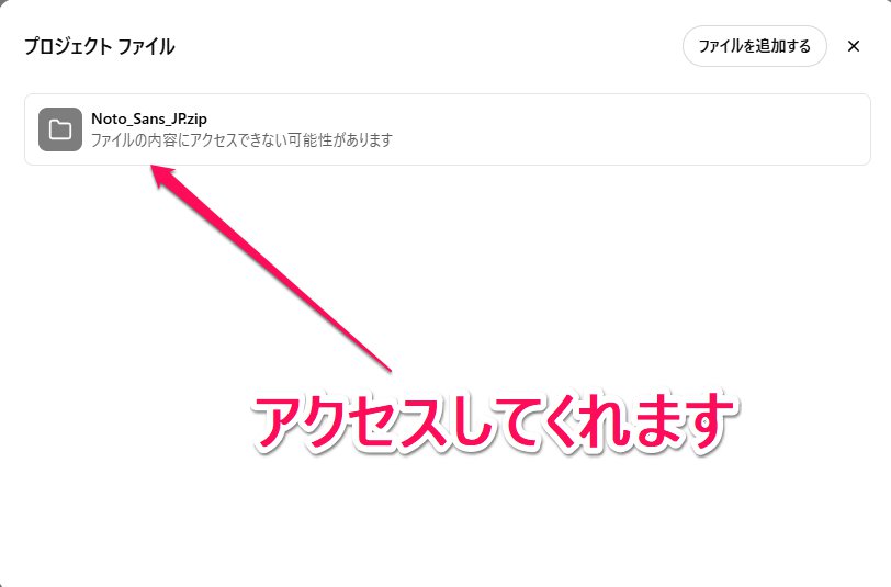 モデルはGPT-4oやo3がオススメ プロジェクトファイルに先ほどDownloadした「Noto_Sans_JP.zip」を入れる