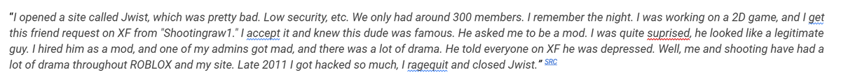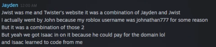 Isaac, as were a lot of others here, was a kid. He often had an odd affinity for hackers and the "Anonymous". Jwist would stay open until an incident that involved Isaac hiring a new moderator on Jwist, known as Shootingraw1 (aka Trent), who was a famous Roblox clan user. This