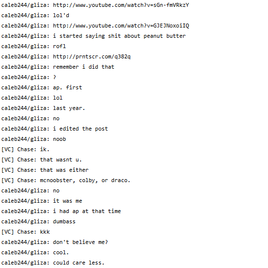 Caleb was pretty good friends with an old clan user iBurning (Alexa) and sometimes shared accounts with her, such as NovaQ, and even Kirby's account. It also seems like they were a thing back then. (At least for a short time before Caleb had a falling out and doxxed her, which