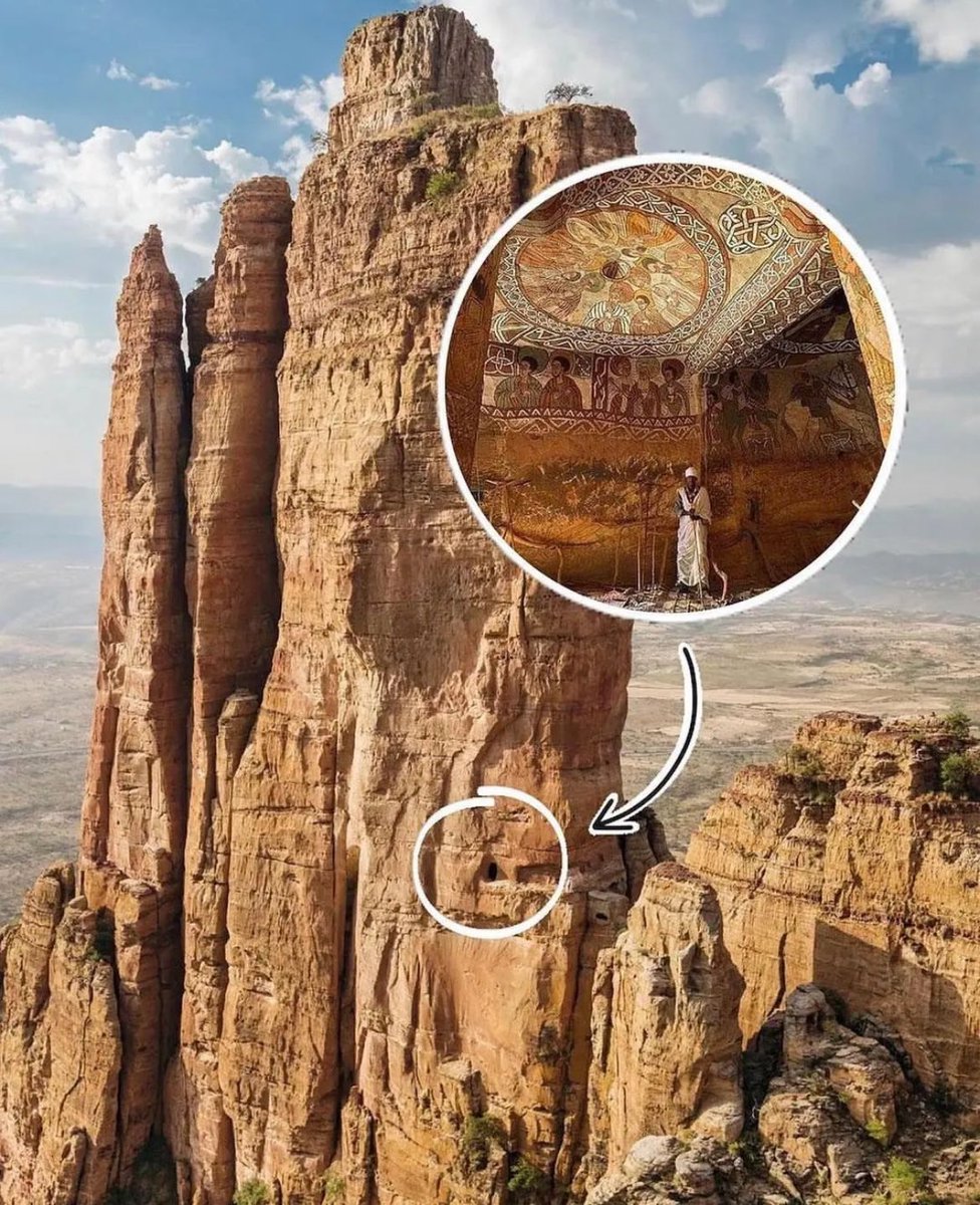 4. Abuna Yemata Guh, Ethiopia Rising 8,460 feet above the ground, Abuna Yemata Guh (first picture) is arguably the most inaccessible place of worship on earth. It features stunning wall paintings dating back to the 5th century.