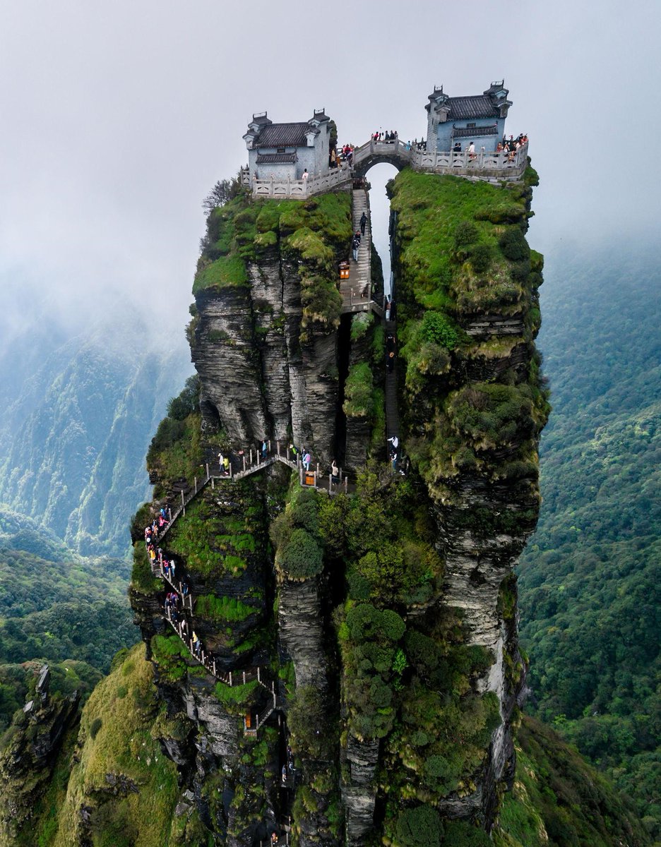 6. Fanjingshan Temples, China These old Buddhist temples, covered with iron tiles to withstand fierce winds, cling to a rocky cliff in the Wuling Mountains, creating a scene that seems almost magical. Reaching them involves a four-hour ascent of over 8,000 steps.