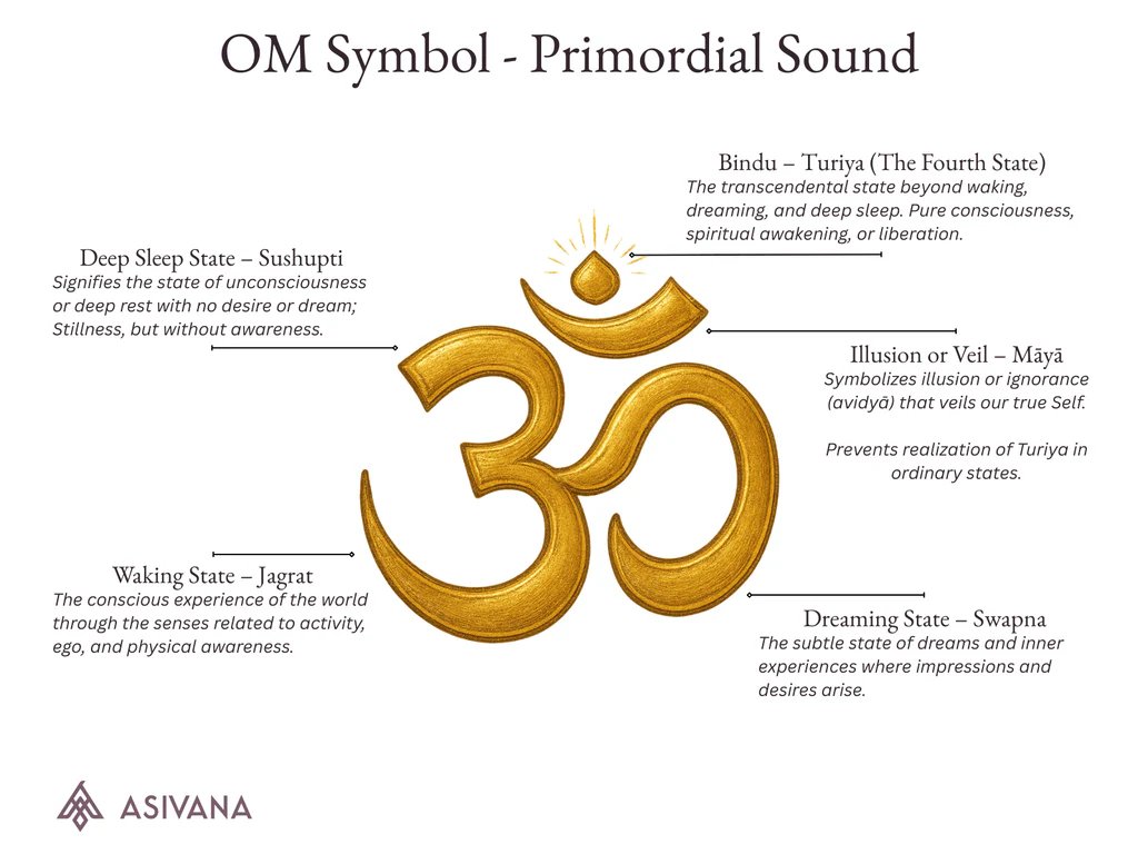 👉 Om is made of 3 sounds: A – U – M (अ – उ – म) These aren’t just letters. They represent your entire consciousness: A → Waking (Jagrat) U → Dreaming (Svapna) M → Deep sleep (Suṣupti) And beyond all three...