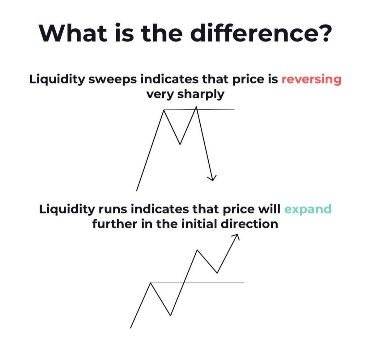 1.2 Liquidity Sweep A Liquidity Sweep targets a specific level to trigger stop orders and cause a reversal. A Liquidity Run moves in one direction without reversing gathering Liquidity before making a major move. It is seen as a continuation of the short term trend.