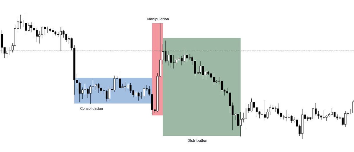 2.3 PO3 Manipulation is where price deliberately move in a false direction to trick traders into taking the wrong position or getting knocked out of their positions This phase is seen as being characterized by sharp, misleading price movements aimed at manipulating liquidity.