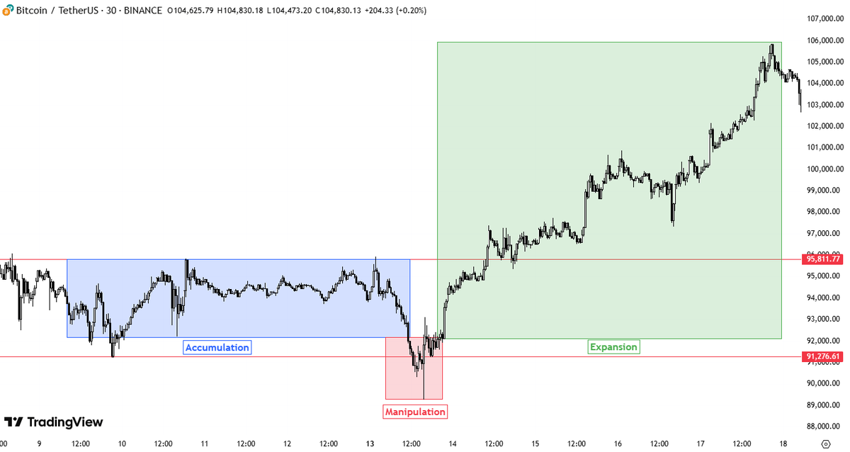 2. PO3 It dissects market movements into 3 distinct phases: Accumulation, Manipulation and Distribution
