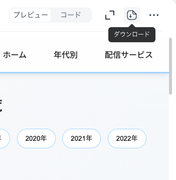 ④Webページ作成 自然言語の指示からWebページを作成してくれます。 作成されたファイルはダウンロードすることが可能です。