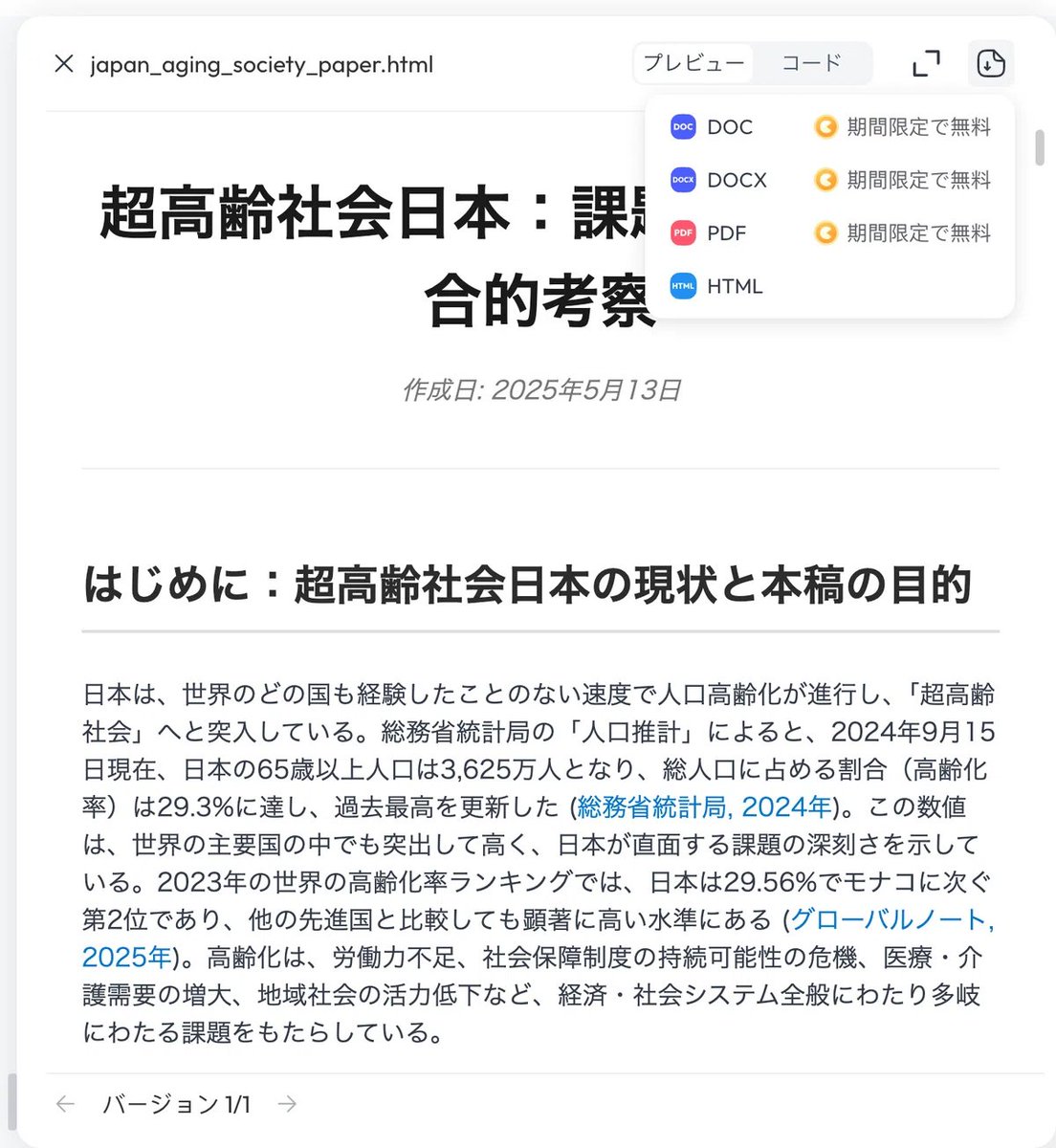 ②スライド作成 デザイン性の高いスライドが作成できるだけでなく、Gensparkと同様にPPTXとして出力できます。 出力したPPTXは編集も可能です。