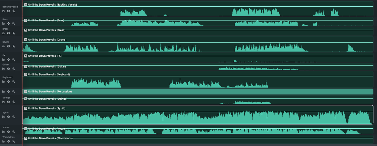 Sunoの最新のステム分離、12トラック対応 かなり実用レベルでヤバいな RipXレベルの細かい編集はできないけど、トラックごとのEQやレベル調整程度なら十分実用的だわこれ いずれリリースされる v5.0 とかどうなってしまうんだこれ