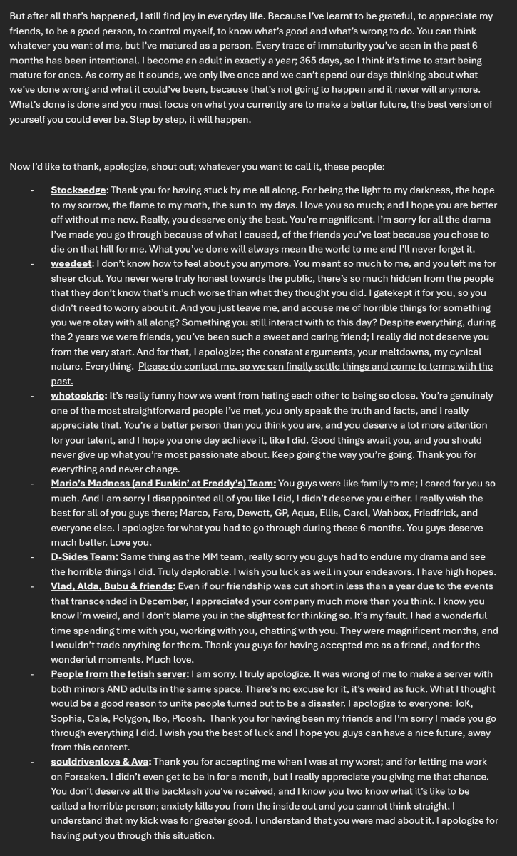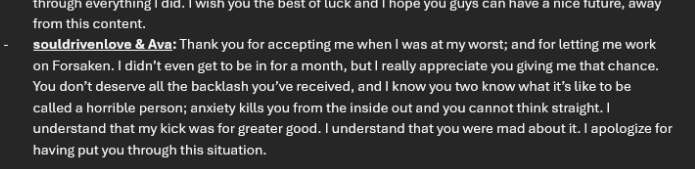 @evenin_arcadia We all make mistakes in life, big or not, we can learn from them and move forward to become a better version of ourself, it’s nice for you to speak out about everything, And I hope life goes well for you moving forward, farewell and take care of yourself