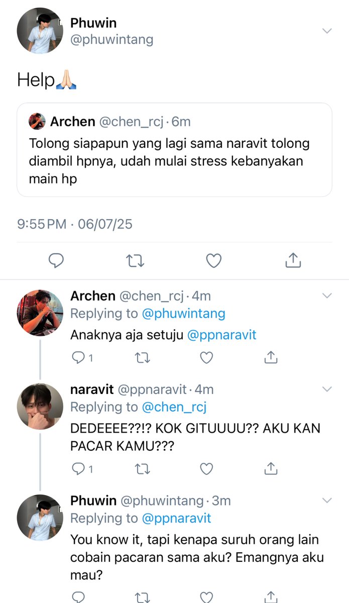 #PondPhuwin au wherein dede is in a stage of asking ‘INI KAPAN PACARANNYA SIH?’ • • Emangnya belum pacaran ya? • • • — CPR Part 5 Gege, dede & Nara universe