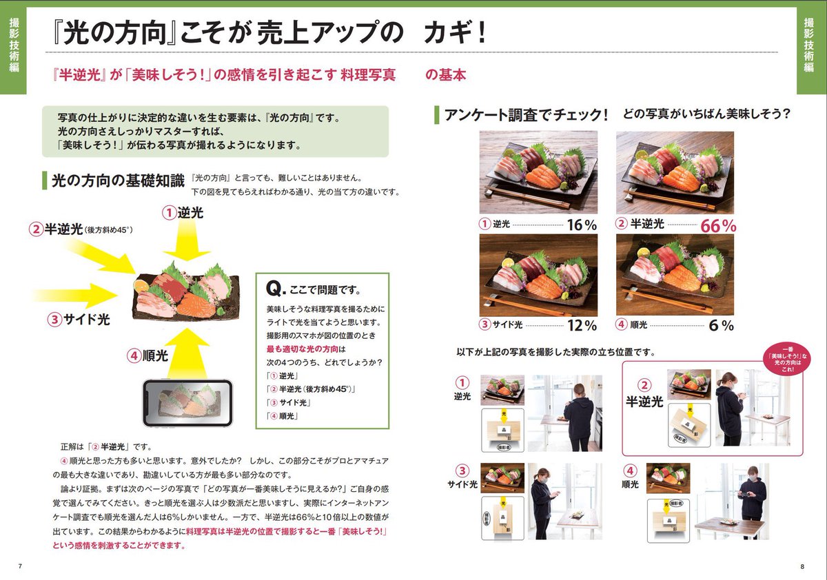 日本政策金融公庫が完全無料で公開している「写真の撮り方ガイド」が超面白い。 外食時に写真を撮る方多いと思うのでこれ保存してぜひ意識してみて。飲食店が売上アップに繋げるための写真の撮り方を解説してる資料なんだけど、光の方向・質、構図、角度など様々な観点で解説してて勉強になる