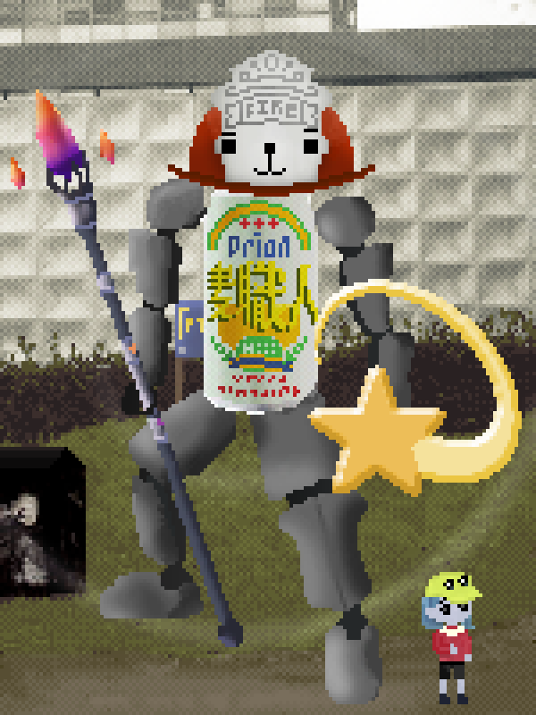 I liked the tension between chaos and order in how these robot figures were depicted. They have an overall pixelated look but the individual body parts and the background project different aesthetics and references