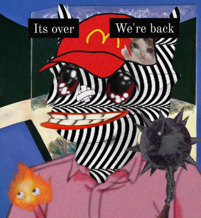 http://Cuckcore.de also is a hub and an archive for Gay NFTs, a schizocollage splinter group of artists who appreciate the visual language of Remilia and take it further aesthetically without engaging in the social messiness of Remilia’s schizoid identity performances