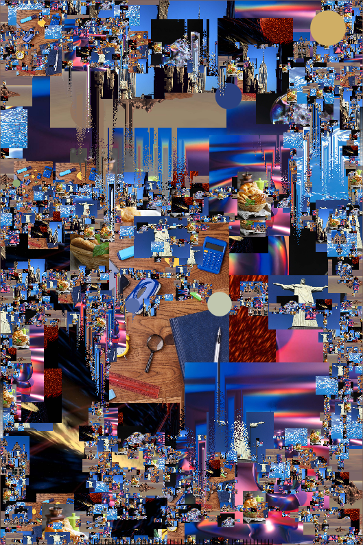 This is going to be a long thread about schizocollage, a kind of maximalist digital art that involves combining wildly different styles and references in a single image.