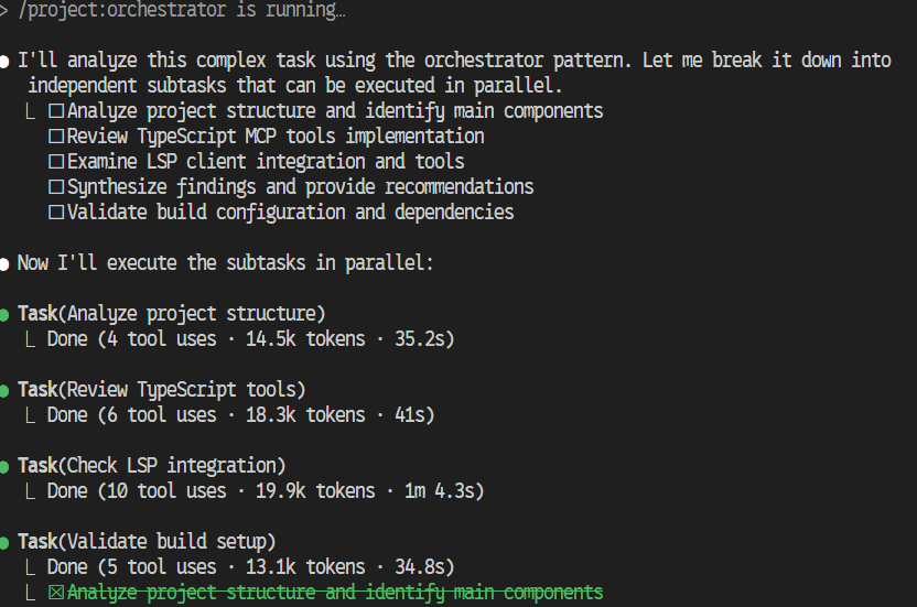 Claude Code 自身に Roo Orchestrator のプロンプト食わせて、Claud Code の Task Tool を使って同様にサブタスクを分割、可能なら並列実行するようにするコマンド作らせたら、なんかそれっぽく動くようになった
