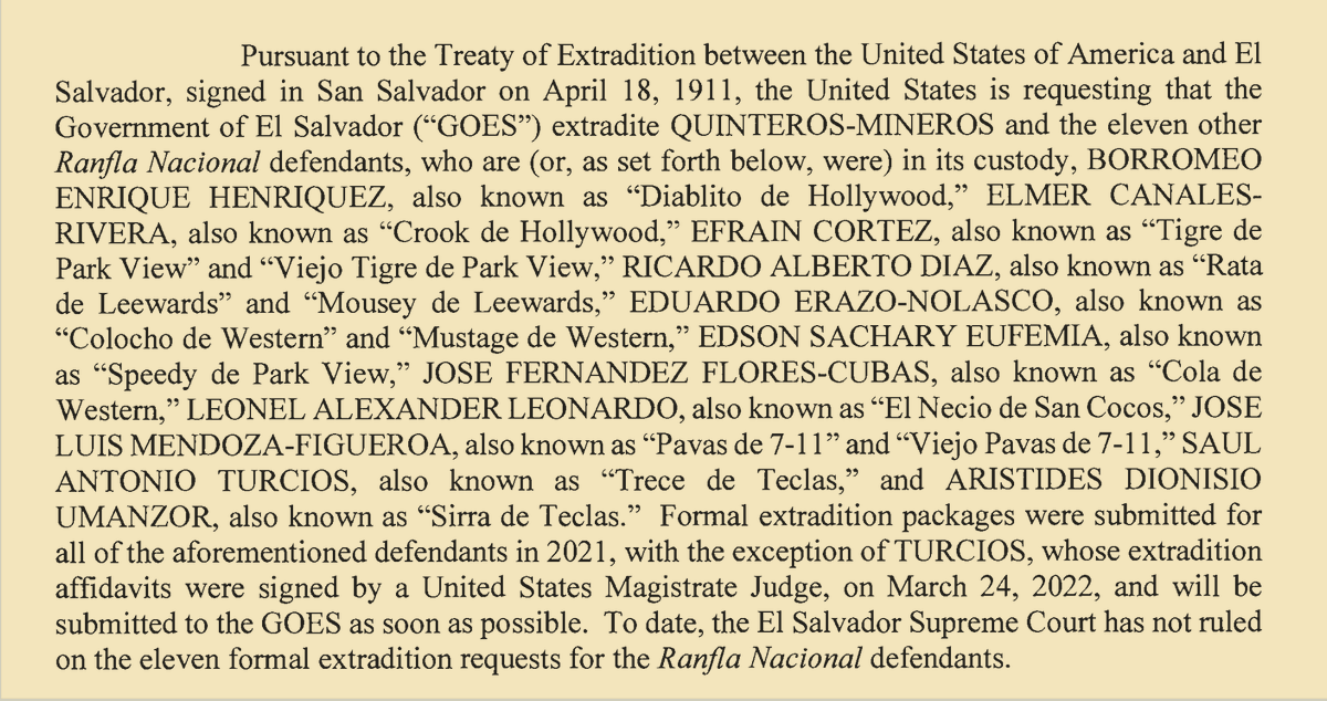 16/ As part of the deportation deal, Bukele asked for the return of senior MS-13 leaders arrested by Vulcan. The DOJ recently asked the court to drop charges against two top gang bosses, citing “geopolitical and national security concerns.” https://www.documentcloud.org/...
