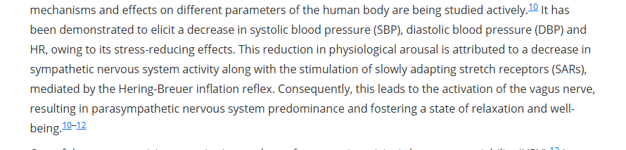 But not all breathing techniques are equal. Nadi Shodhana (alternate nostril breathing) was tested on hypertensive patients. Just 10 minutes led to immediate reductions in systolic blood pressure, diastolic blood pressure, and heart rate. The effects lasted 6 weeks.