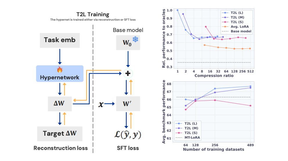 Text-to-LoRA Fine-tuning effective models is hard and damn expensive! What if an AI model could help you adapt LLMs on the fly? Meet Text-to-LoRA, a hypernetwork trained to construct LoRAs in one forward pass through natural language. Here are my notes: