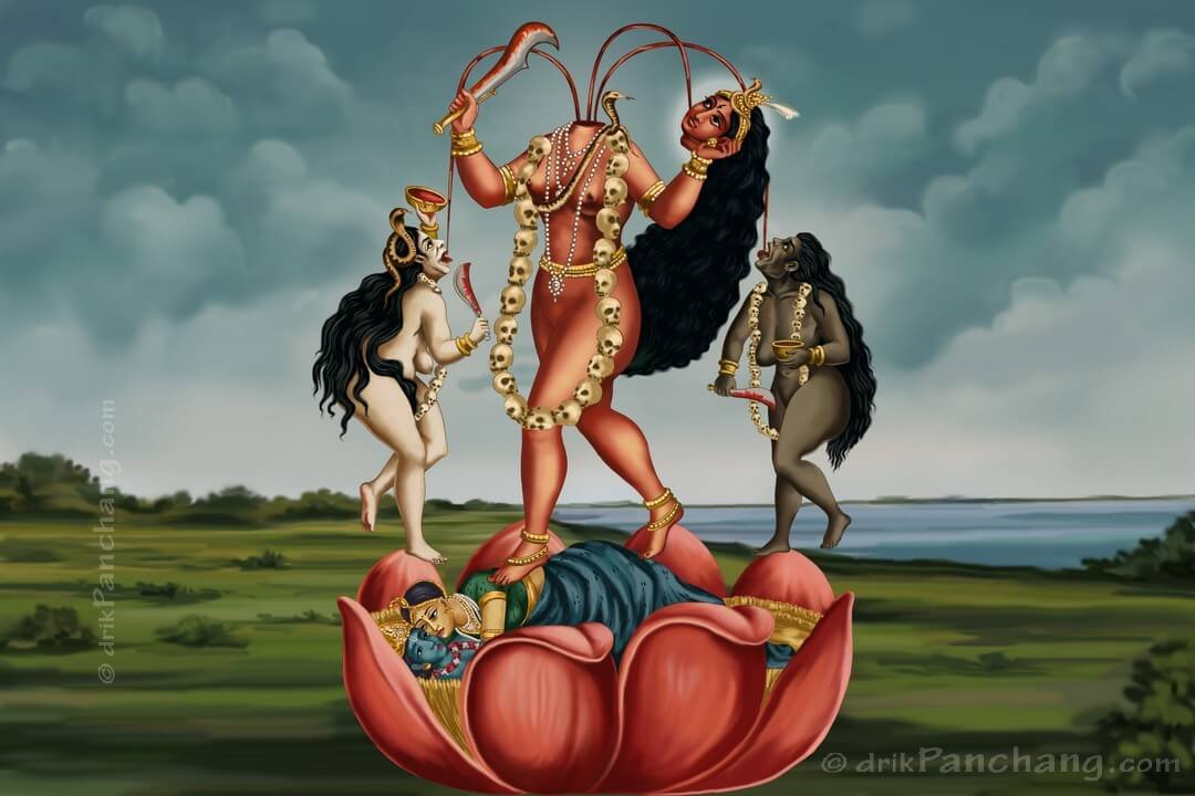 5. Maa Chhinnamastā She decapitates herself — and feeds her attendants with her own blood. The mind has to be cut. The self has to be offered. She is the moment when thought dies, and pure awareness explodes.
