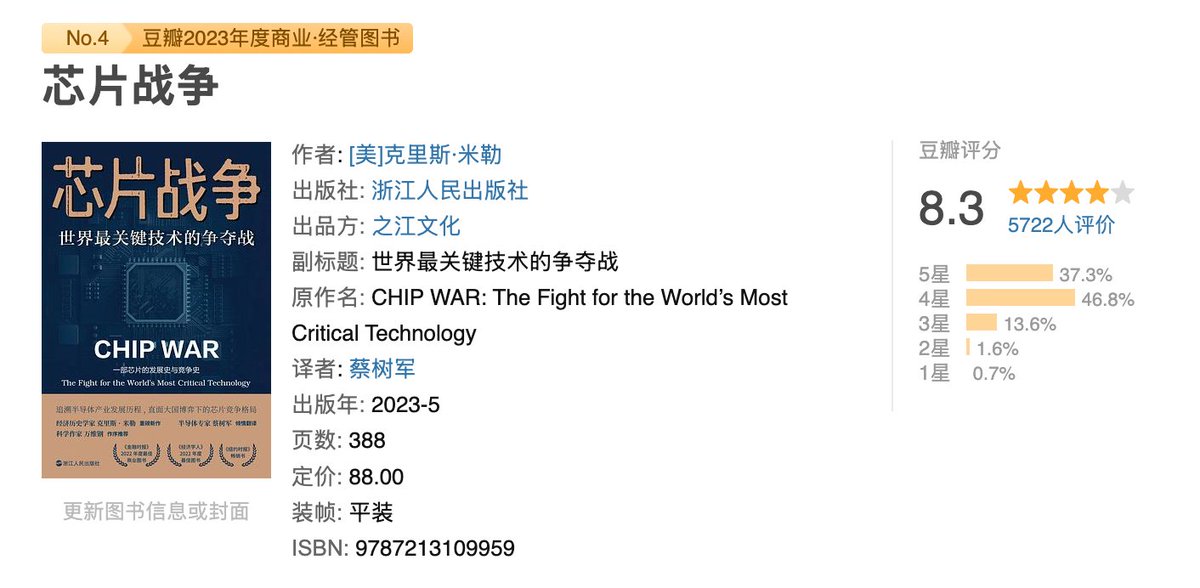 🔥读之前觉得芯片重要,读之后觉得芯片太重要了。 有趣的是作者是一位美国历史政治学家,所以反而没有复杂的技术语言,通俗易懂。 读完这本书后,至少在看到半导体和芯片的相关新闻报道的时候,不是一脸茫然的状态了。 无删减版🧵: