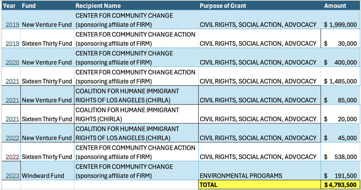 Arabella’s Protest Subcontractors: Two Arabella-funded nonprofits—Community Change Action (+FIRM) and the Coalition for Humane Immigrant Rights of Los Angeles (CHIRLA)—were involved in “anti-ICE” riots, with Arabella providing $5 million to them based on recent disclosures.